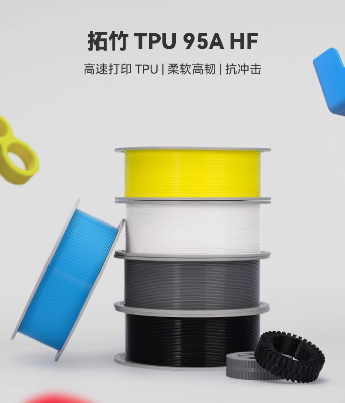 TPU (Thermoplastic Polyurethane) là loại nhựa nhiệt dẻo đàn hồi, nổi bật với độ mềm mại và khả năng chịu va đập. Chỉ số 95A thể hiện độ cứng Shore A của vật liệu – ở mức này, TPU vẫn rất đàn hồi, không quá mềm nhưng đủ linh hoạt để in các chi tiết yêu cầu độ uốn cong, co giãn.